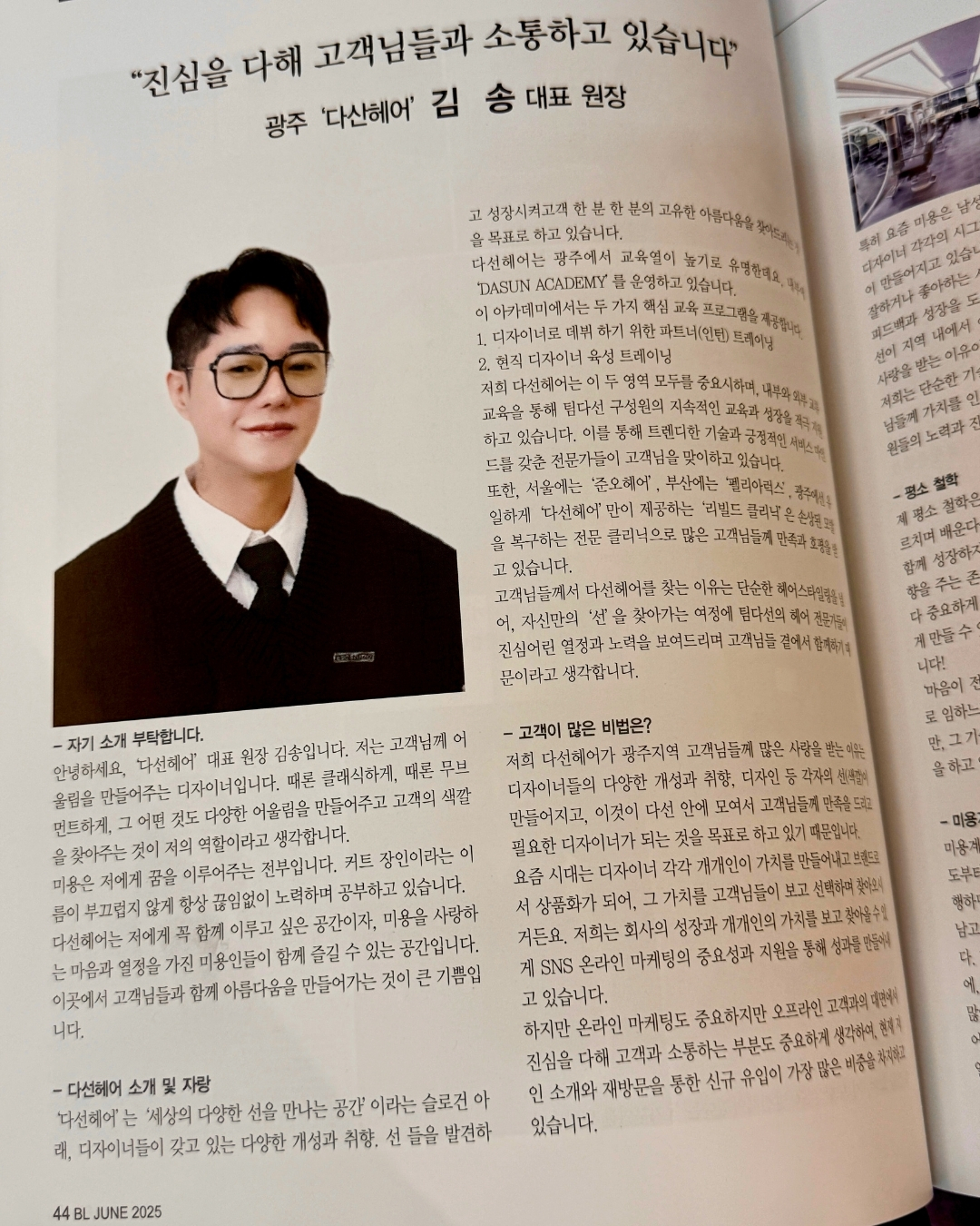나는 고객님께 어울림을 만들어주는 디자이너다 때론 클래식하게 때론 무브먼트하게 그 어떤것도 다양한 어울림을 만들어주고 고객의 색깔을 찾아주는것 나는 그런 디자이너이다